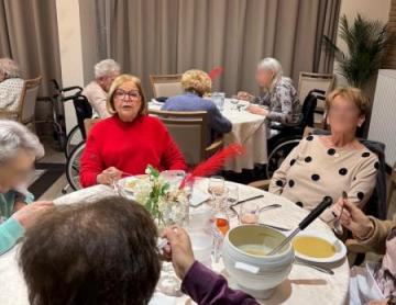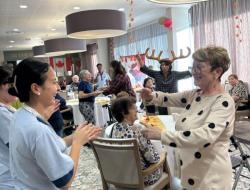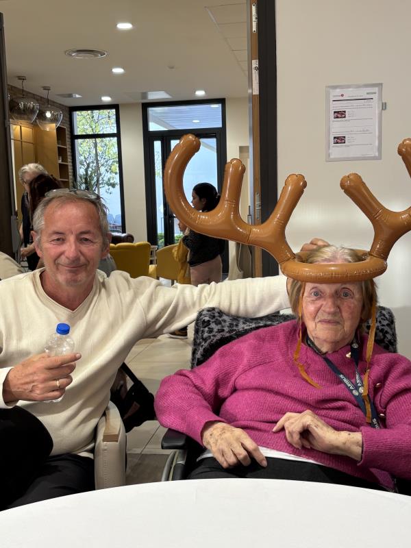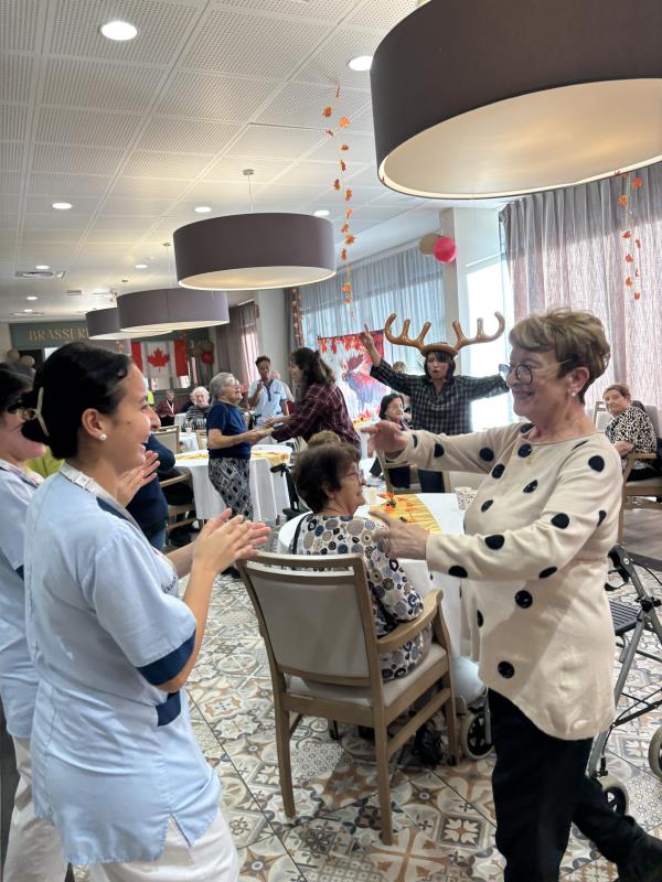 Pour l’occasion, la salle de restaurant s’est parée de couleurs automnales, entre nuances d’orange et de jaune, plongeant tout le monde dans une atmosphère chaleureuse et réconfortante. Les familles étaient nombreuses à partager ce moment avec nos résidents, accueillis au son du célèbre titre de Line Renaud, « Ma cabane au Canada »