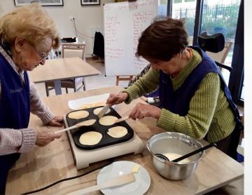 Place ensuite à la gourmandise avec un atelier de préparation de pancakes maison. Résidents et familles ont mis la main à la pâte pour préparer ces délicieuses petites crêpes. La dégustation fut un succès unanime, surtout accompagnée du célèbre sirop d’érable et d’un chocolat chaud surmonté de marshmallows fondants. Un grand bravo à nos cuisiniers et nos chefs improvisés !