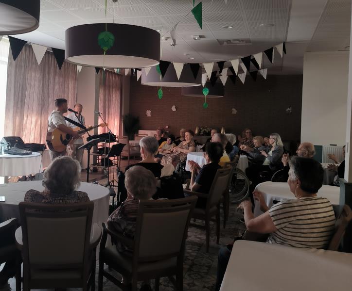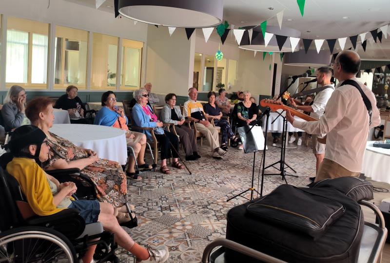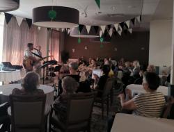 Vendredi, place à la musique avec le concert du mois ! Le duo Le Rétro, deux guitaristes passionnés, a fait voyager nos résidents au rythme de chansons entraînantes qui ont éveillé de beaux souvenirs. L’ambiance joyeuse a fait fredonner quelques résidents jusqu'au lendemain.