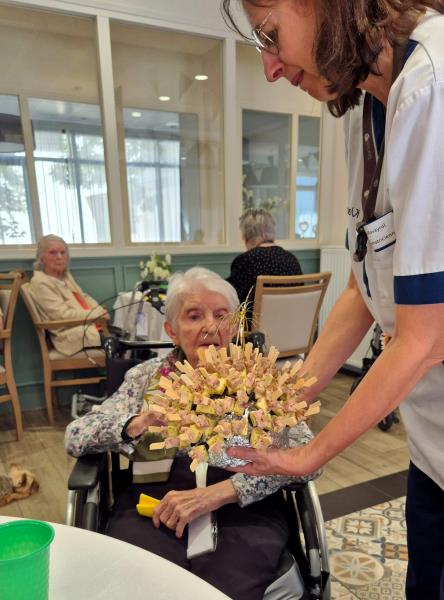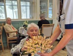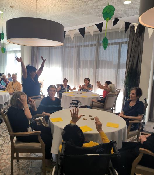 Jeudi, nos aînés ont profité du goûter festif sur le thème de la fête de la bière. Tout au long de la journée, les résidents ont pu fièrement présenter les décorations qu’ils avaient réalisées lors des ateliers créatifs. Pour le la plaisir des résidents, le chef avait préparé un goûter salé très apprécié des amateurs de charcuterie, le tout accompagné d’un verre de bière (avec ou sans alcool) !